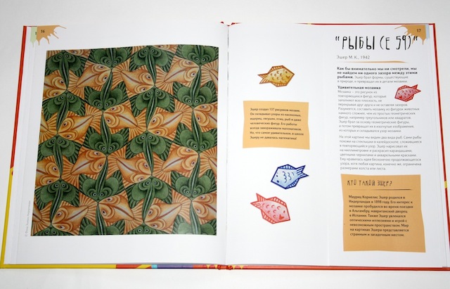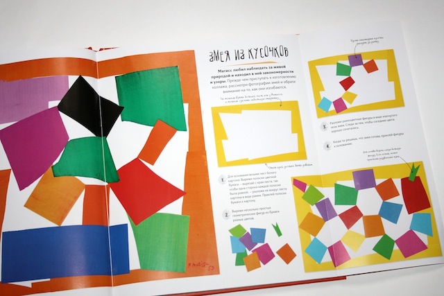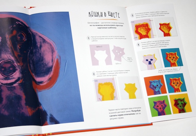 Книга содержит 12 разворотов с известными произведениями знаменитых художников, таких как Матисс, Эшер, Дега, Уорхолл и других. В самом начале предлагается информация о том, с чего начать рисование и как подготовить рабочее место. Каждый разворот книги — шедевр. Вы можете рассмотреть работу художника, узнать, чем он знаменит и как создал свою картину. Далее предлагается открыть клапан с пошаговой инструкцией как создать собственный арт-проект по мотивам увиденного. Совсем не обязательно делать все точно так, как написано. Картинка из книги — это всего лишь идея, а вот создать свой арт-проект предстоит вам!
