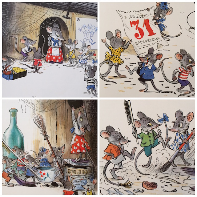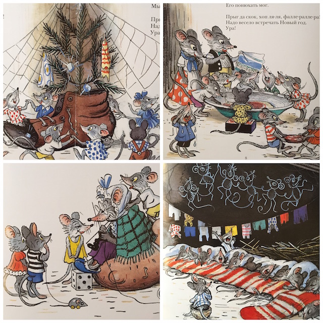 Книжка для малышей с иллючтрациями замечательного художника Владимира Сутеева. Это чудесная и веселая сказка в стихах о дружной семье мышей, которая готовится к празднику. Иллюстрации Сутеева яркие, узнаваемые издалека и любимые с детства. На рисунках можно разглядеть множество очаровательных мелочей: прелестную мышку с колесиками на веревочке у одного из малышей, ведерко из наперстка и метлу из кисточик для рисования, мудрую бабушку-мышь, сидящую на качалке-картофелине, подставку для ног из игрального кубика и многое другое.