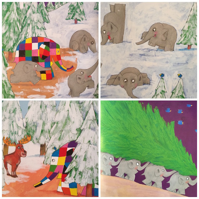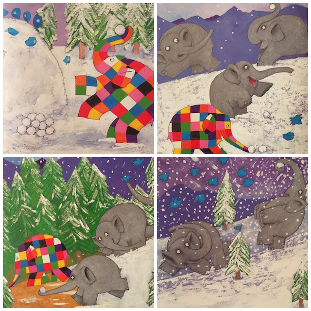 Как-то утром слоны пожаловались Элмеру, что им очень холодно, в ответ он предложил им пойти прогуляться, чтобы согреться. Прогулка удалась на славу! Слоны увидели снег, покатались на льду, слепили снеговиков-слонов и поиграли в снежки. Ведь не важно, тепло на улице или холодно, с друзьями гулять всегда весело!