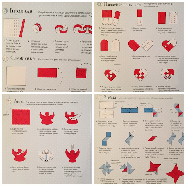 С помощью этой книги дети смогут самостоятельно украсить дом к празднику. На нескольких страницах изложены инструкции по созданию новогодних украшений (гирлянда, снежинка, ангел, сердечко и звезда), а остальные страницы — разноцветная плотная бумага с различной новогодней тематикой для этих поделок. Большой плюс этой книги, что в ней есть не только описание как сделать, но и сами материалы, не надо ничего искать и покупать дополнительно. Изготовление украшений несложное, книга отлично подойдет для детей, которые любят мастерить своими руками.
